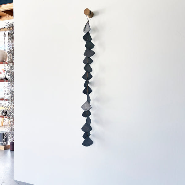 A long single strand of 16 layered tucker stoneware shells in Grey
