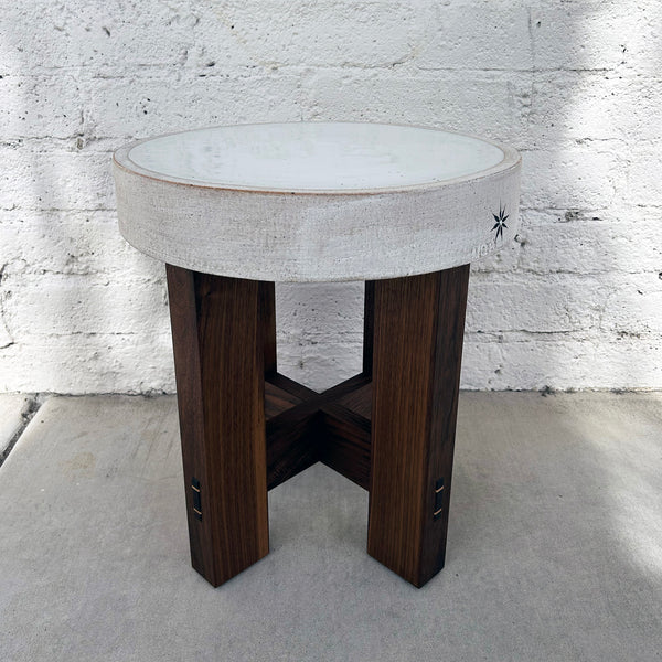 Large hand built stoneware Drum Tabletop painted with a glazed Full Moon White and a signature star on the side