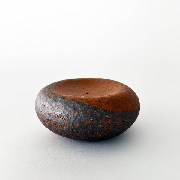 Hand built incense burner in Tucker extra dark stoneware is hammered and painted with a Marigold Eclipse & glazed signature Crescent