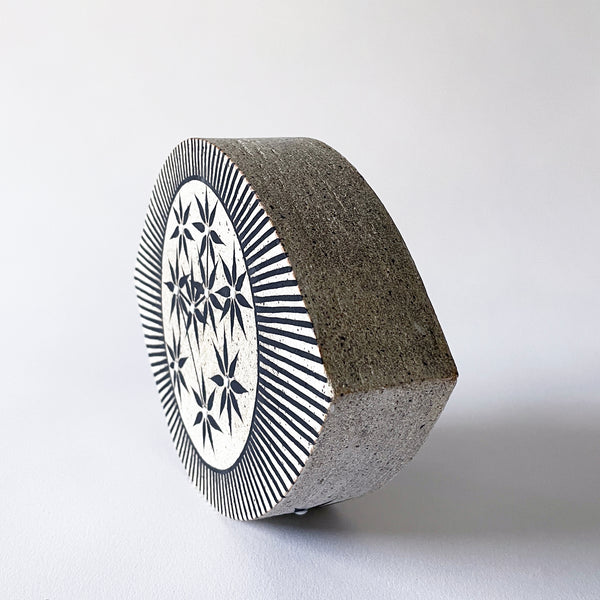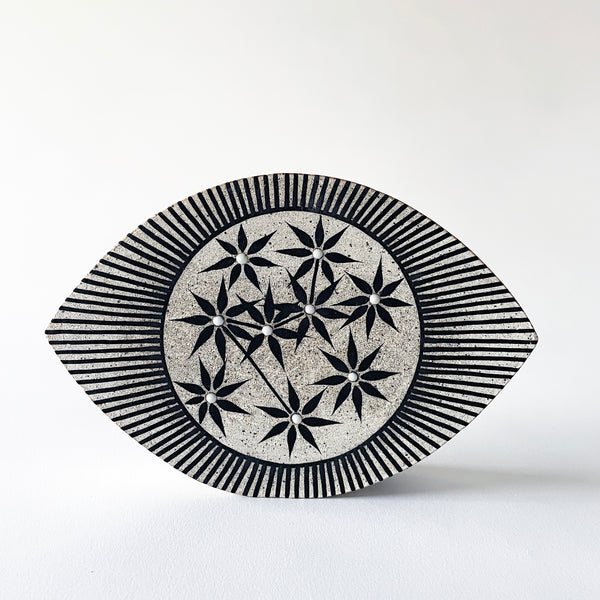 Hand built stoneware eye object is painted with New Eye Constellations