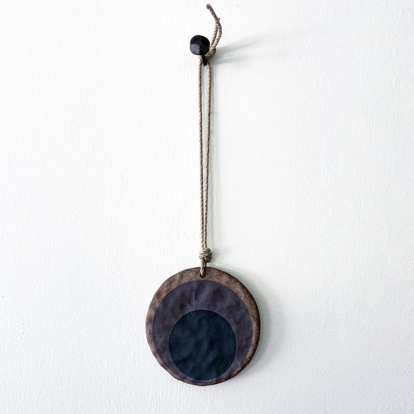 Large round ornament in Tucker stoneware is hand painted with Nested Two- Black & Dark Brown
