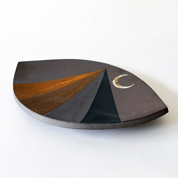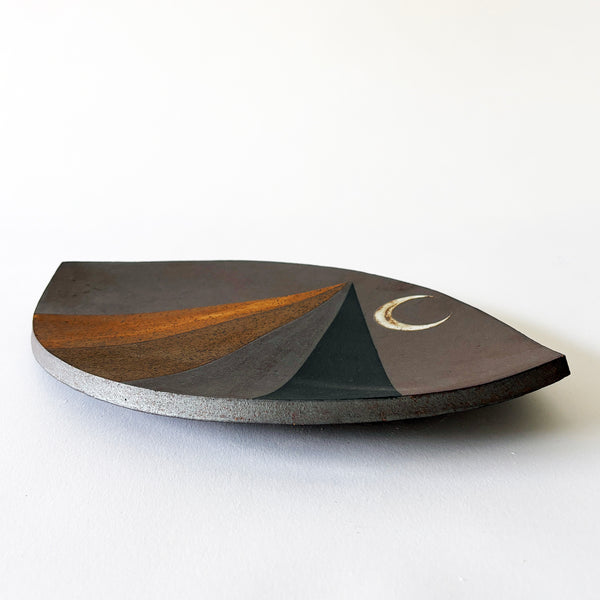 Tucker stoneware eye dish is painted with Prism in Four Black and a Crescent