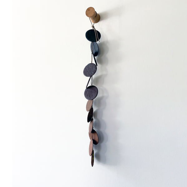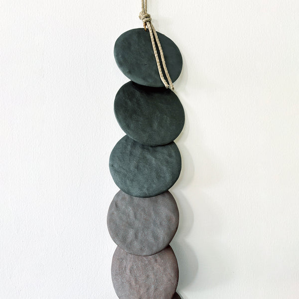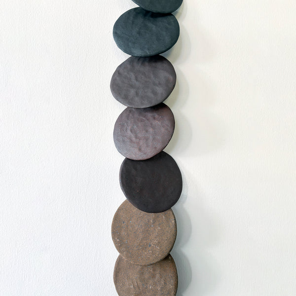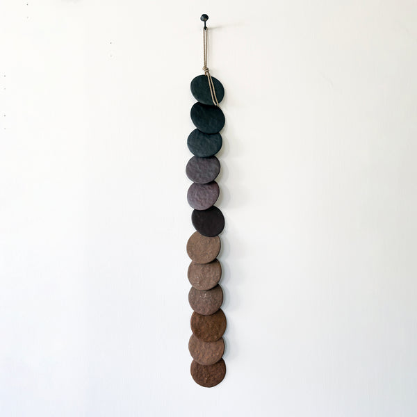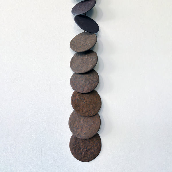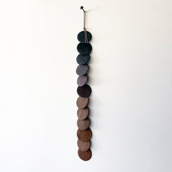 A long strand of 12 layered tucker stoneware discs in Four Black Full (Black, Dark Brown, Med Brown & Golden Brown)